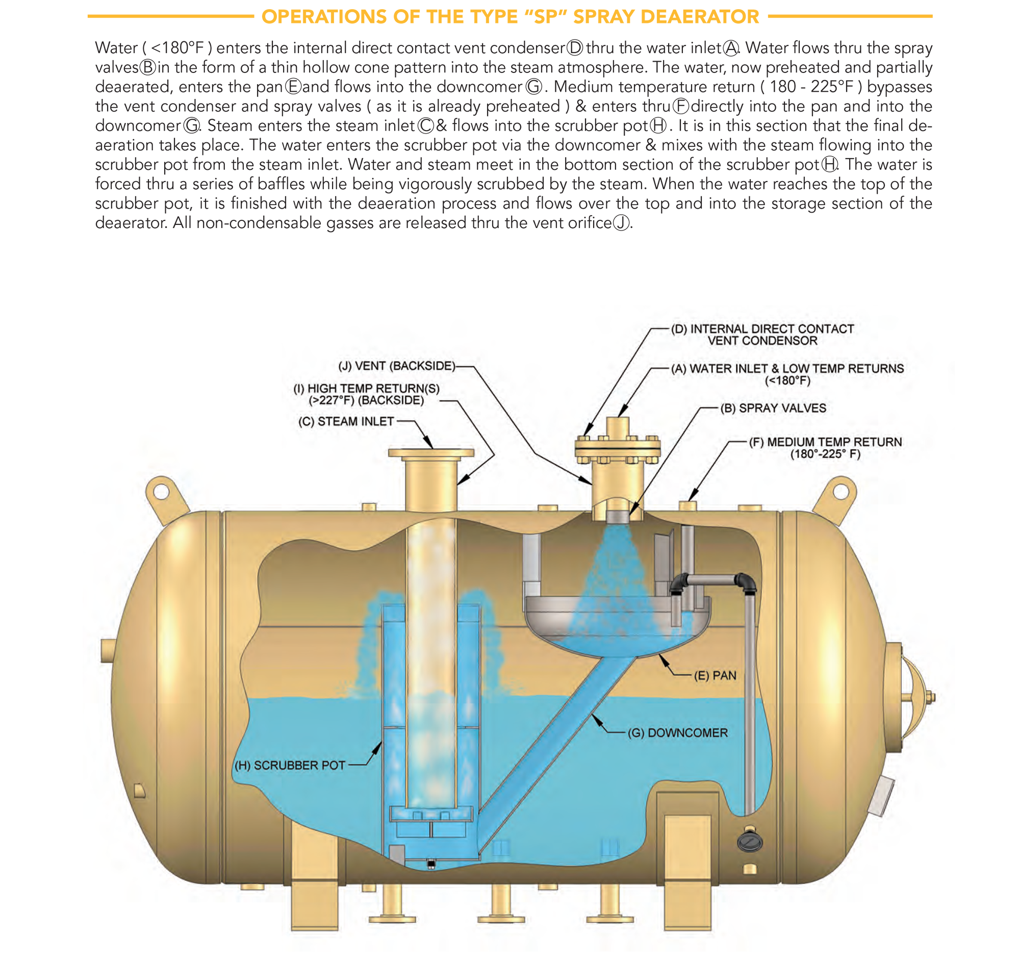 The SP-DA Spray-Type Deaerator removes oxygen and dissolved gases from boiler feedwater using a sparging process. Designed for effective deaeration in a compact footprint, it reduces corrosion risks and improves boiler longevity. Configurable with various tank sizes and options, the SP-DA integrates seamlessly with feedwater systems to ensure clean, treated water for optimal boiler performance.