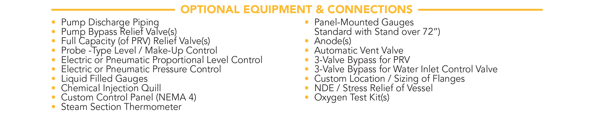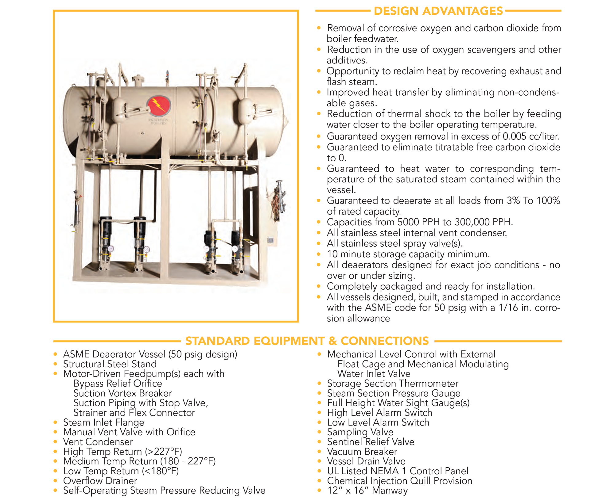• Vessels rated for 50 PSIG with 1/16 in. corrosion allowance (ASME Code compliant)