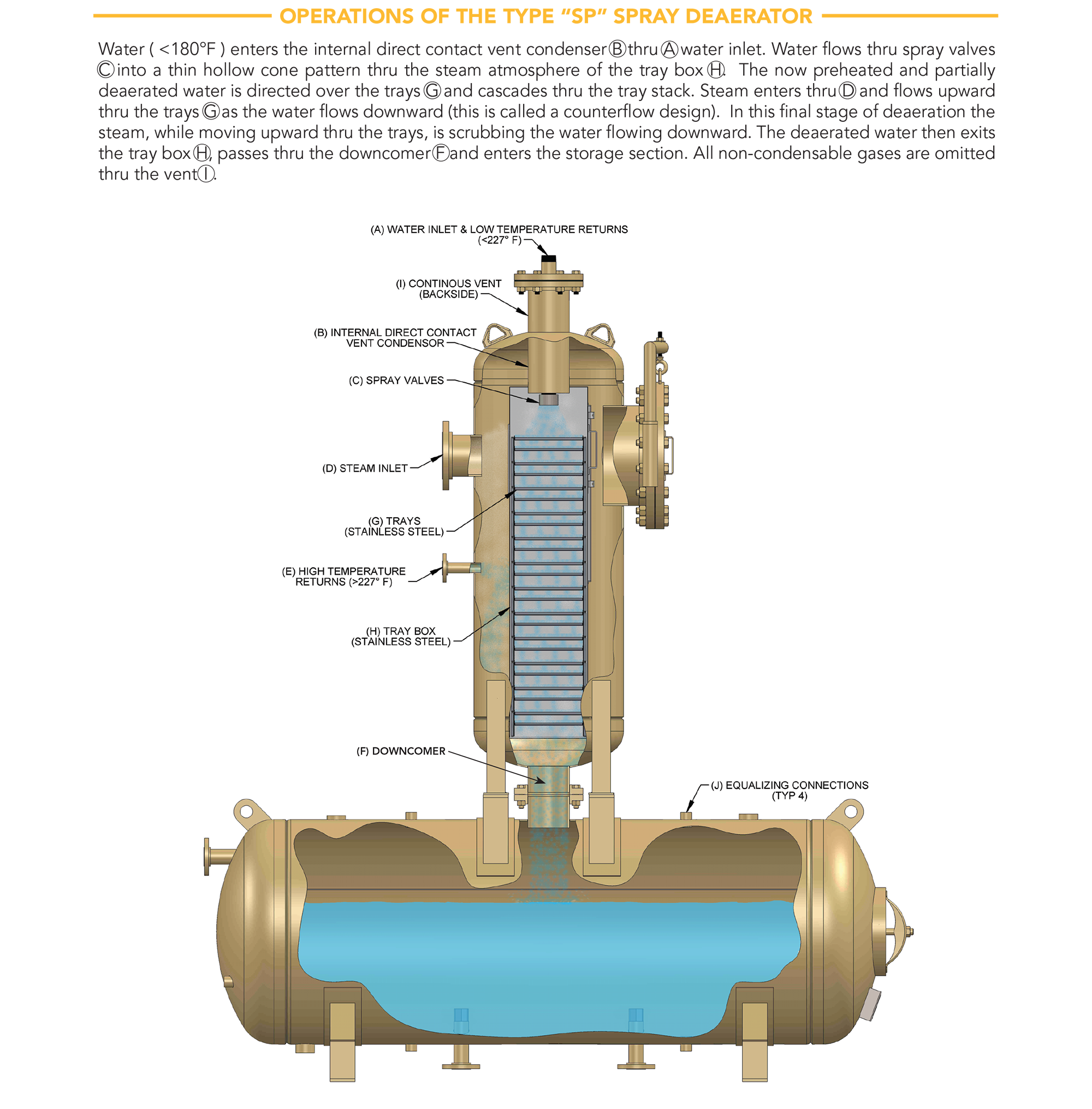 The TR-DA Tray-Type Deaerator provides efficient removal of oxygen and non-condensable gases through multiple tray stages. Its design ensures thorough deaeration to protect boiler systems from corrosion and extends equipment life. Available with customizable capacity and pressure ratings, the TR-DA fits a variety of applications requiring high-quality treated feedwater.